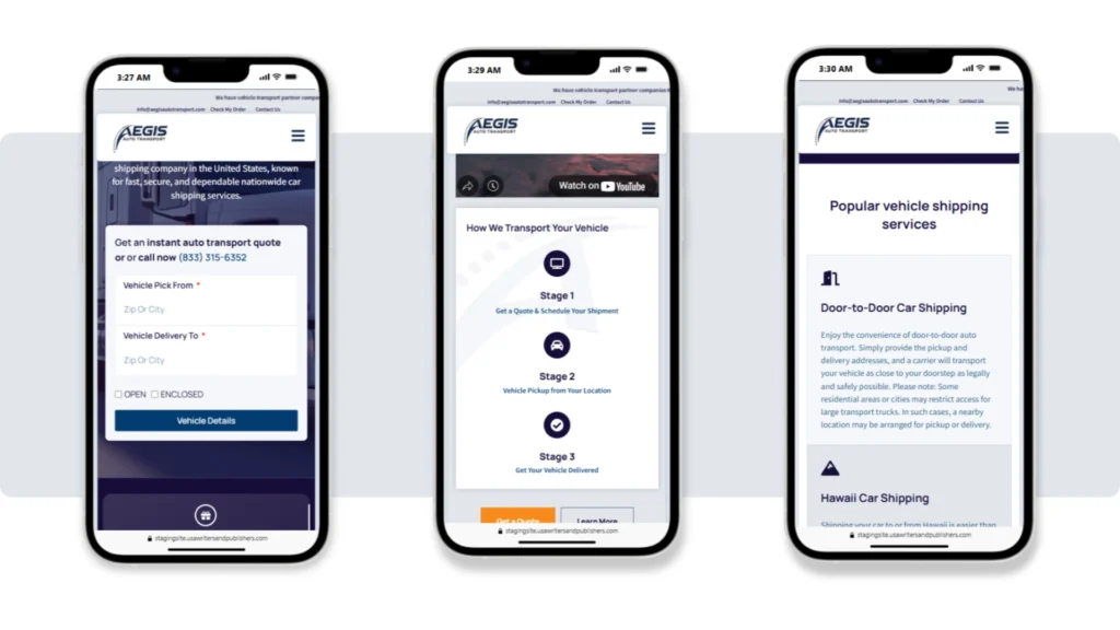Aegis packages its expertise into customized solutions for dealerships, manufacturers, relocation services, and other auto businesses. These companies can offer “ship car from dealership” services online, helping them enhance customer experience and grow profits.